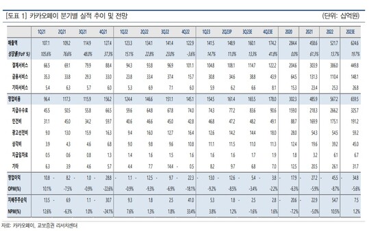 결제서비스의 성장률이 반등한 점이 긍정적이지만, 수익성 회복이 지연되고 있는 점이 우려된다.