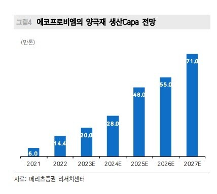 노우호 메리츠증권 연구원은 "주요 원재료 가격과 판매단가 하락 영향에 분기 수익성 눈높이는 하반기 단계별 하향될 것"이라며 "그럼에도 꾸준한 증설(CAM 8~9)과 수직계열화 기반으로 이익 창출력 우위를 확보하고 있어 3개년 간의 매출액 성장률은 +36%를 예상한다"고 말했다.