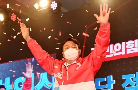 | 3월 8일 경기도 고양시 일산 킨텍스에서 열린 국민의힘 제3차 전당대회에서 김기현 신임 당 대표가 당기를 흔들고 있다. (사진=연합뉴스) |