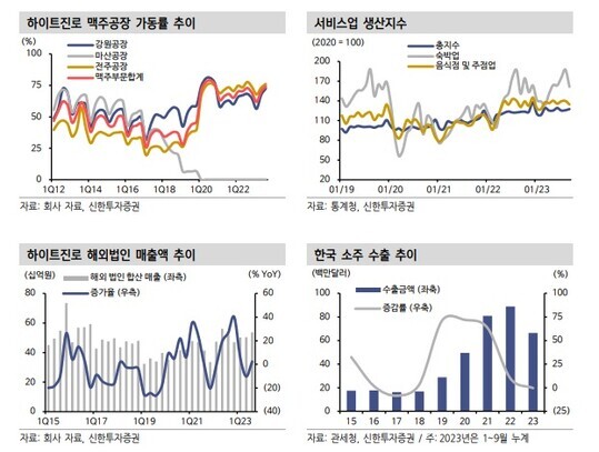 하나증권은 하이트진로 2023년 연결 손익은 전년 대비 700억원가량 감소할 것으로 예상한 반면, 2024년 연결 영업이익은 전년 대비 59.6% 증가한 1964억원으로 추정했다.