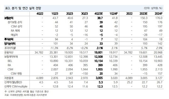 다만, 신계약 CSM은 상반기 대비 증가했는데 타사와 달리 단기납 종신보험이 아닌 다른 종류의 상품에서의 판매 확대에 기인한다는 점이 긍정적이다.