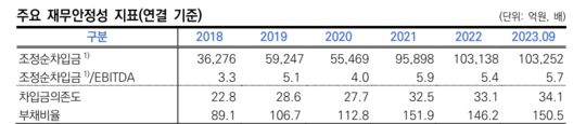 | 주요 재무안정성 지표(연결기준). (자료=한신평) |