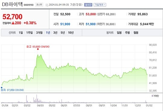 KCGI 역시 주주행동주의를 발표한 후인 지난해 4월 4일 DB하이텍 주가가 전 거래일 대비 9.81% 상승한 8만 3600원에 거래된 바 있다.