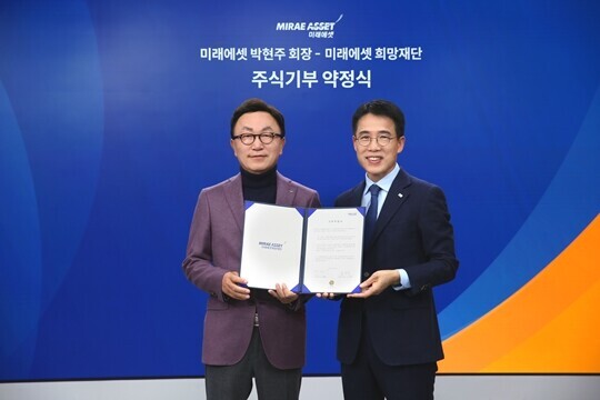 | 박현주 미래에셋그룹 회장이 2023년 12월 26일 미래에셋희망재단과 주식 기부약정서를 체결했다. (사진=미래에셋자산운용) |