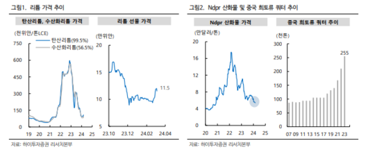 김윤상 하이투자증권 연구원은 "반등 배경은 글로벌 리튬 업체 구조 조정 및 투자 연기와 중국 정부 환경 문제 발생으로 리튬 주요 산지인 장시성 이춘시에 대한 환경조사가 실시될 예정이라는 점"이라고 설명했다.
