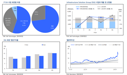 정 연구원은 "AI 서버 모멘텀이 실적으로 가시화된 Pure Storage(31.9배), Super Micro Computer(41.1배) 보다 낮지만, AI 모멘텀이 실적으로 가시화되지 않았다는 점이 공통되는 HPE는 동사 대비 서버 매출 비중이 높지만 9.1배에서 거래중"이라고 설명했다.