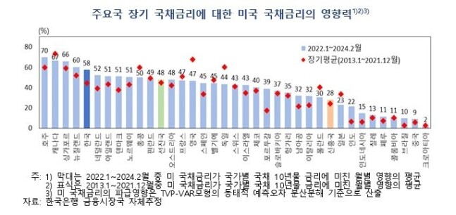 구병수 과장은 각국의 경제 여건에 맞는 통화정책이 이루어질 경우, 시장 참가자들의 미국채에 대한 동조화 기대를 줄이며 영향력을 낮출 수 있을 것이라고 밝혔다.