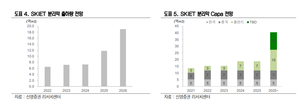 분리막 출하량이 크게 부진했기 때문이다. 전방 고객(SKIET→SK온→Ford/VW/중국OEM등)의 재고조정이 크게 나타난 영향이다.