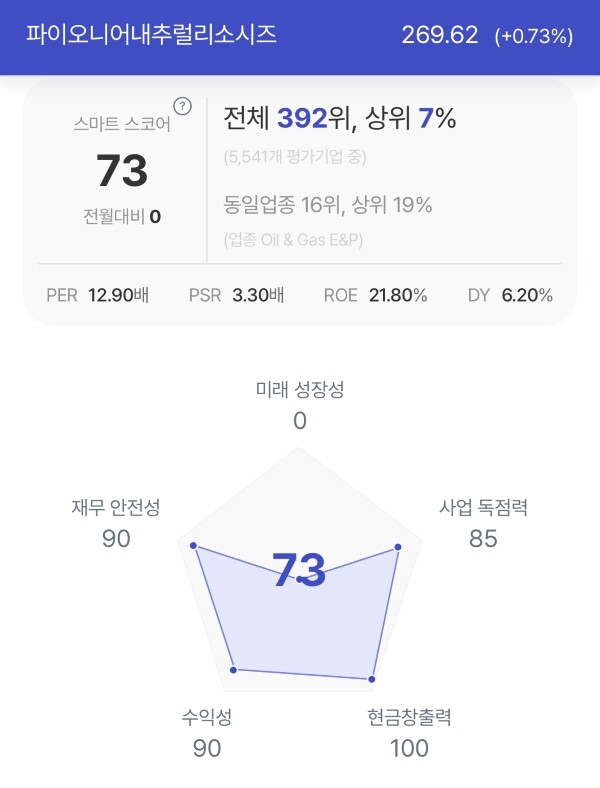 | 파이오니어 내추럴 리소시즈 주가 분석. (자료=초이스스탁) |