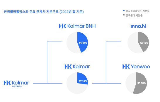 이후 지주회사인 한국콜마홀딩스를 중심으로 한국콜마, 콜마비앤에이치, HK이노엔, 연우 등 각 관계사가 화장품, 의약품, 건강기능식품, 포장재 사업을 영위하며 글로벌 뷰티 & 바이오 헬스케어 산업을 리드하고 있다.