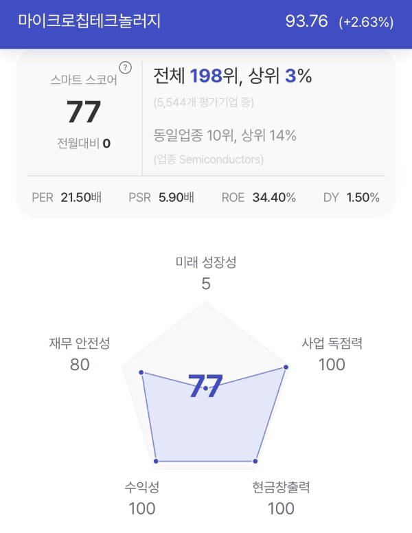 | 마이크로칩 테크놀로지 주가 분석. (자료=초이스스탁) |