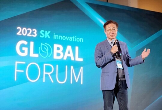 | 김준 SK이노베이션 부회장이 미국 캘리포니아주 새너제이(San Jose)에서 열린 ‘SK이노베이션 글로벌 포럼’에 참석해 발언을 하고 있다. (사진=SK이노베이션) |